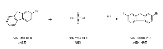 2.通过2-溴芴和硫酸合成2-溴-7-碘芴,收率约81%;