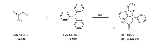 1.通过一氯丙酮和三苯基膦合成乙酰三苯基氯化磷,收率约98%;