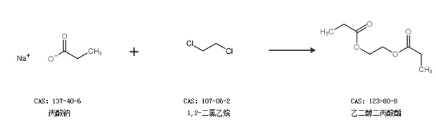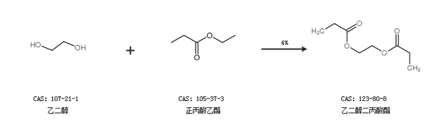 1.通过乙二醇和正丙酸乙酯合成乙二醇二丙酸酯,收率约4%;