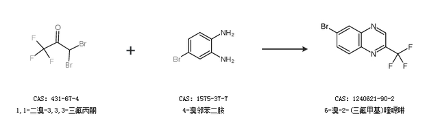 1.通过1,1-二溴-3,3,3-三氟丙酮和4-溴邻苯二胺合成6-溴-2-(三氟甲基)喹噁啉