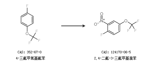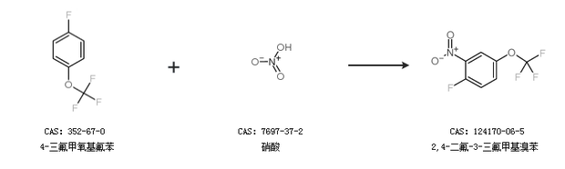 2.通过4-三氟甲氧基氟苯和硝酸合成2,4-二氟-3-三氟甲基溴苯
