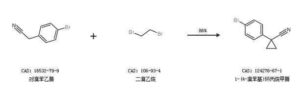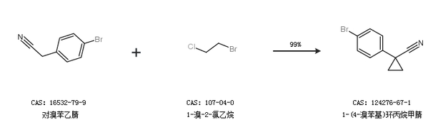 1.通过对溴苯乙腈和1-溴-2-氯乙烷合成1-(4-溴苯基)环丙烷甲腈,收率约99%;