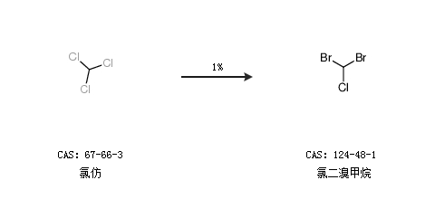 2.通过氯仿合成氯二溴甲烷,收率约1%;