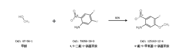 2.通过甲醇和4,5-二氟-2-硝基苯胺合成4-氟-5-甲氧基-2-硝基苯胺,收率约82%;