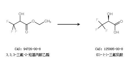 2.通过3,3,3-三氟-2-羟基丙酸乙酯合成(S)-(-)-三氟乳酸