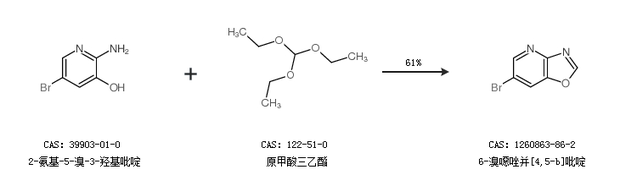 1.通过2-氨基-5-溴-3-羟基吡啶和原甲酸三乙酯合成6-溴噁唑并[4,5-b]吡啶,收率约61%;