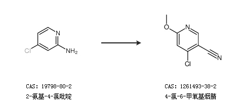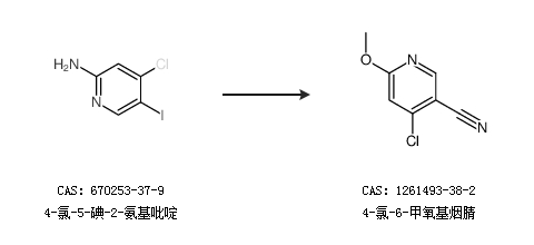 2.通过4-氯-5-碘-2-氨基吡啶合成4-氯-6-甲氧基烟腈
