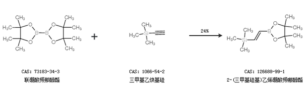 1.通过联硼酸频那醇酯和三甲基乙炔基硅合成2-(三甲基硅基)乙烯硼酸频哪醇酯,收率约24%;