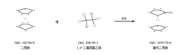 1.通过二茂铁和1,2-二溴四氯乙烷合成溴代二茂铁,收率约93%;