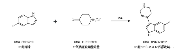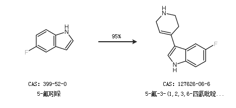 2.通过5-氟吲哚合成5-氟-3-(1,2,3,6-四氢吡啶-4-基)-1H-吲哚,收率约95%;