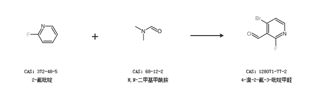 1.通过2-氟吡啶和N,N-二甲基甲酰胺合成4-溴-2-氟-3-吡啶甲醛
