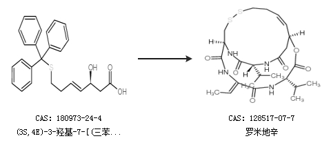 1.通过(3S,4E)-3-羟基-7-[(三苯基甲基)硫基]-4-庚烯酸合成罗米地辛