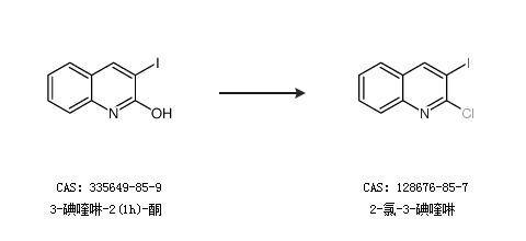 2.通过3-碘喹啉-2(1h)-酮合成2-氯-3-碘喹啉