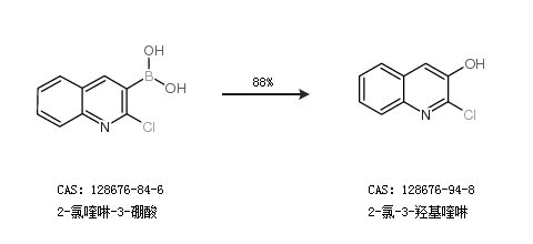 1.通过2-氯喹啉-3-硼酸合成2-氯-3-羟基喹啉,收率约88%;