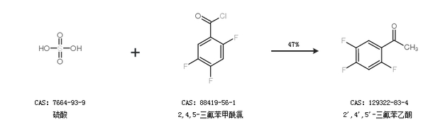 1.通过硫酸和2,4,5-三氟苯甲酰氯合成2'',4'',5''-三氟苯乙酮,收率约47%;