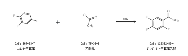 2.通过1,2,4-三氟苯和乙酰氯合成2'',4'',5''-三氟苯乙酮,收率约88%;