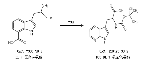 2.通过DL-7-氮杂色氨酸合成BOC-DL-7-氮杂色氨酸,收率约73%;
