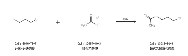 2.通过1-氯-3-碘丙烷和硫代乙酸钾合成硫代乙酸氯代丙酯,收率约89%;