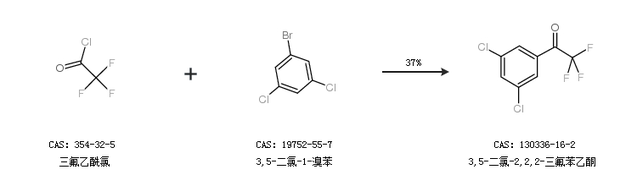 2.通过三氟乙酰氯和3,5-二氯-1-溴苯合成3,5-二氯-2,2,2-三氟苯乙酮,收率约37%;