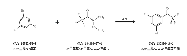 1.通过3,5-二氯-1-溴苯和N-甲氧基-N-甲基-2,2,2-三氟乙酰胺合成3,5-二氯-2,2,2-三氟苯乙酮,收率约36%;