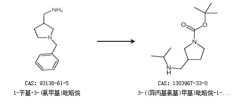 2.通过1-苄基-3-(氨甲基)吡咯烷合成3-((异丙基氨基)甲基)吡咯烷-1-羧酸叔丁酯