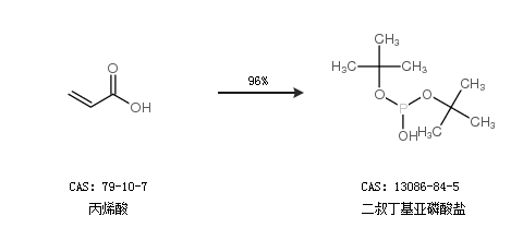1.通过丙烯酸合成二叔丁基亚磷酸盐,收率约96%;