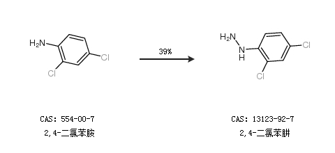 1.通过2,4-二氯苯胺合成2,4-二氯苯肼,收率约39%;