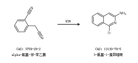 1.通过alpha-氰基-邻-苯乙腈合成3-氨基-1-溴异喹啉,收率约93%;