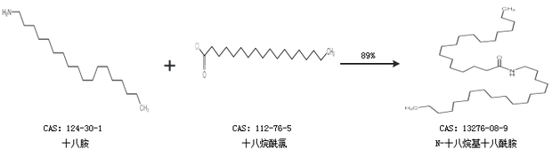 1.通过十八胺和十八烷酰氯合成N-十八烷基十八酰胺,收率约89%;