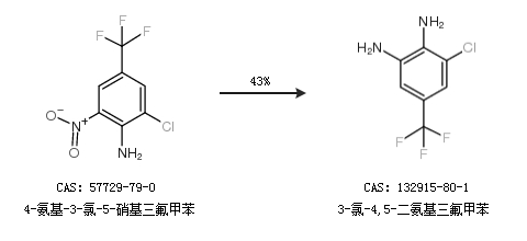 1.通过4-氨基-3-氯-5-硝基三氟甲苯合成3-氯-4,5-二氨基三氟甲苯,收率约43%;