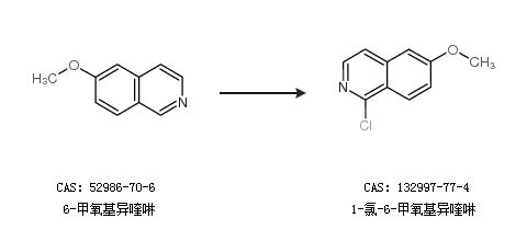 2.通过6-甲氧基异喹啉合成1-氯-6-甲氧基异喹啉