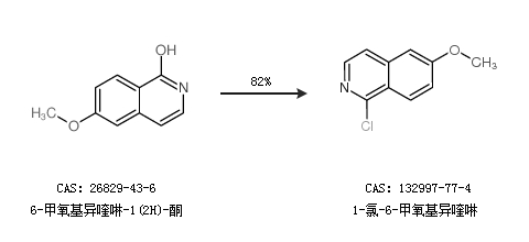 1.通过6-甲氧基异喹啉-1(2H)-酮合成1-氯-6-甲氧基异喹啉,收率约82%;