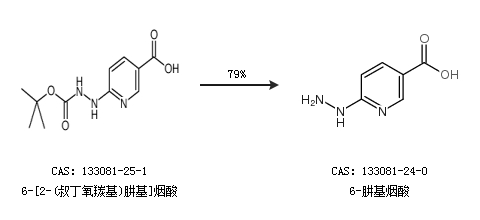2.通过6-[2-(叔丁氧羰基)肼基]烟酸合成6-肼基烟酸,收率约79%;