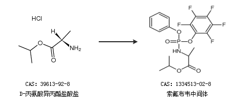 英文别名 N-[(S)-(2,3,4,5,6-pentafluorophenoxy)phenoxyphosphinyl]-L-alanine1-Methylethylester;(S)-isopropyl 2-(((S)-(perfluorophenoxy)(phenoxy)phosphoryl)amino)propanoate;2(S)-[((S)-2,3,4,5,6-pentafluoro-phenoxy)-phenoxy-phosphorylamino]propionic acid isopropyl ester;(S)-2-[(S)-(2,3,4,5,6-pentafluoro-phenoxy)-phenoxy-phosphorylamino]propionic acid isopropyl ester;(2S)-isopropyl 2-(((perfluorophenoxy)(phenoxy)phosphoryl)amino)propanoate;