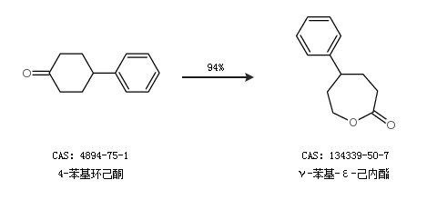 1.通过4-苯基环己酮合成γ-苯基-ε-己内酯,收率约94%;
