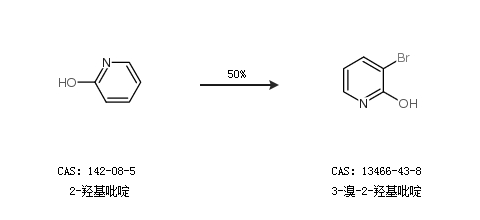 1.通过2-羟基吡啶合成3-溴-2-羟基吡啶,收率约50%;
