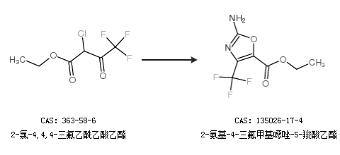 2.通过2-氯-4,4,4-三氟乙酰乙酸乙酯合成2-氨基-4-三氟甲基噁唑-5-羧酸乙酯
