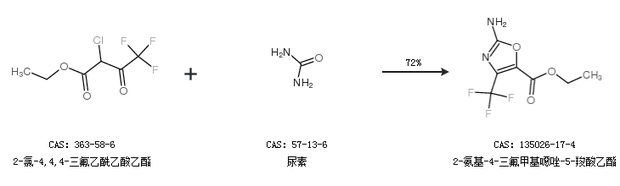 1.通过2-氯-4,4,4-三氟乙酰乙酸乙酯和尿素合成2-氨基-4-三氟甲基噁唑-5-羧酸乙酯,收率约72%;