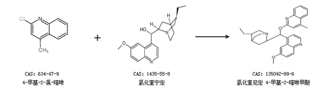 1.通过4-甲基-2-氯-喹啉和氢化奎宁定合成氢化奎尼定 4-甲基-2-喹啉甲醚