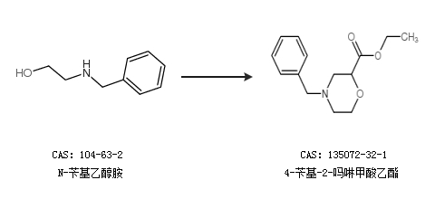 2.通过N-苄基乙醇胺合成4-苄基-2-吗啉甲酸乙酯