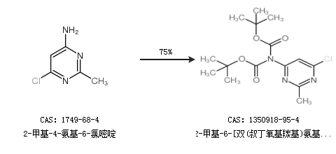 1.通过2-甲基-4-氨基-6-氯嘧啶合成2-甲基-6-[双(叔丁氧基羰基)氨基]-4-氯嘧啶,收率约75%;