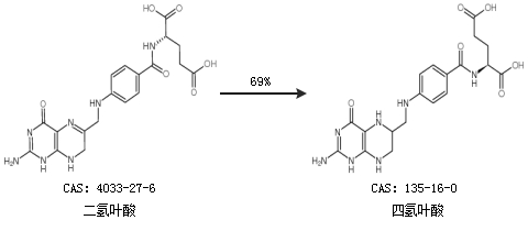 1.通过二氢叶酸合成四氢叶酸,收率约69%;