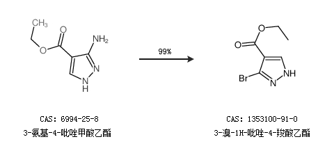 1.通过3-氨基-4-吡唑甲酸乙酯合成3-溴-1H-吡唑-4-羧酸乙酯,收率约99%;