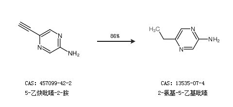 1.通过5-乙炔吡嗪-2-胺合成2-氨基-5-乙基吡嗪,收率约86%;