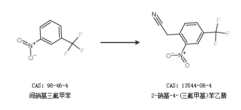 2.通过间硝基三氟甲苯合成2-硝基-4-(三氟甲基)苯乙腈