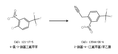 1.通过4-氯-3-硝基三氟甲苯合成2-硝基-4-(三氟甲基)苯乙腈