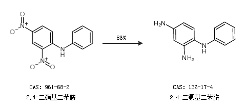 1.通过2,4-二硝基二苯胺合成2,4-二氨基二苯胺,收率约86%;