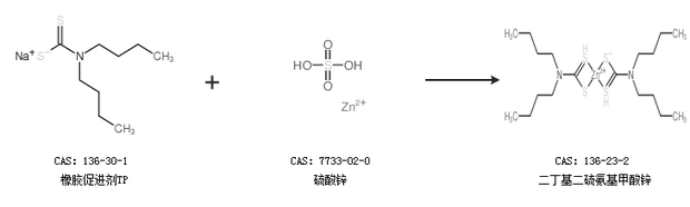 1.通过橡胶促进剂TP和硫酸锌合成二丁基二硫氨基甲酸锌