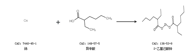 1.通过铈和异辛酸合成2-乙基己酸锌