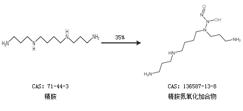 1.通过精胺合成精胺氮氧化加合物,收率约35%;